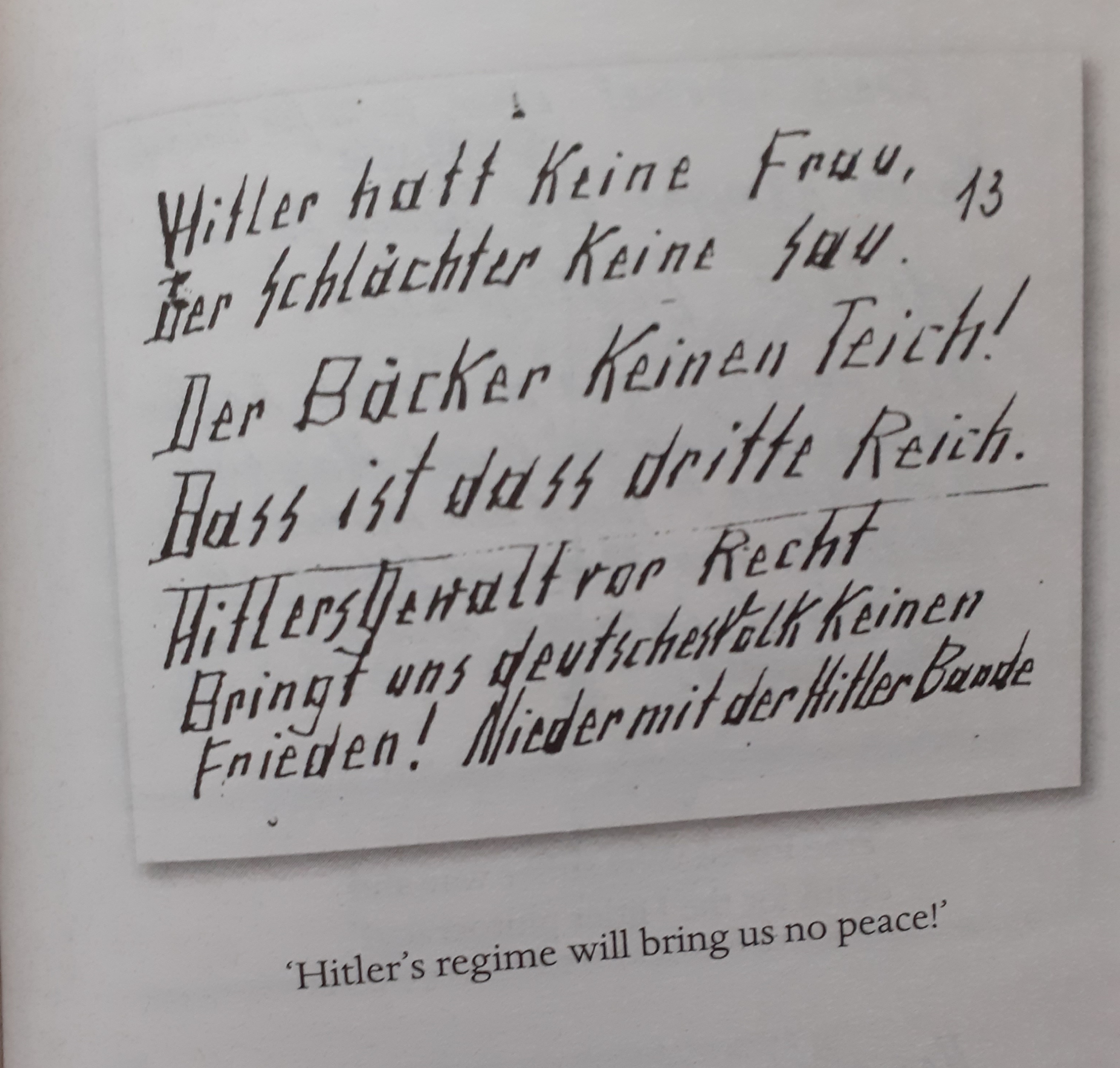 The life of the Quangels is just one thread of the narrative, intricately interwoven with those of their neighbours, colleagues, Escherich himself and incidental characters caught up in the events. Hans Fallada tells these stories with shrewd, journalistic observation, presenting brilliantly clear insight of daily life in war-time Berlin. His descriptions, littered with humour of the most steadfastly deadpan variety, detail both the mundanities and little quirks of human nature, using a broad spectrum of characters to do so: from a pet shop owner to a Gestapo officer to a gambler. By providing this societal cross-section, the novel effectively demonstrates that no one dealt with the pressures of living under such a regime in exactly the same way. Judge Fromm chooses nocturnal isolation, just as Trudel retreats to her home comforts. Hetty copes through dissenting thoughts, but they remain just that, while one factory worker puts his treacherous sentiments into action, mangling his own hand in an act of sabotage. Naturally, their stark contrasts are interesting. However, arguably more compelling is the way Fallada uses this range of characters to show one consistent parallel; everyone, including those in positions of power, has something (or someone) to hide. For many, this is simply their unvarnished thoughts, as potentially dangerous as any crime – โthoughts were freeโ, they said โ but they ought to have known that in this State, not even thoughts were freeโ. This widespread concealment could explain the โturn a blind eyeโ behaviour of the public that pervades the novel; few people are willing to help others, due to the risk of drawing attention to themselves, thus exposing their own secrets.