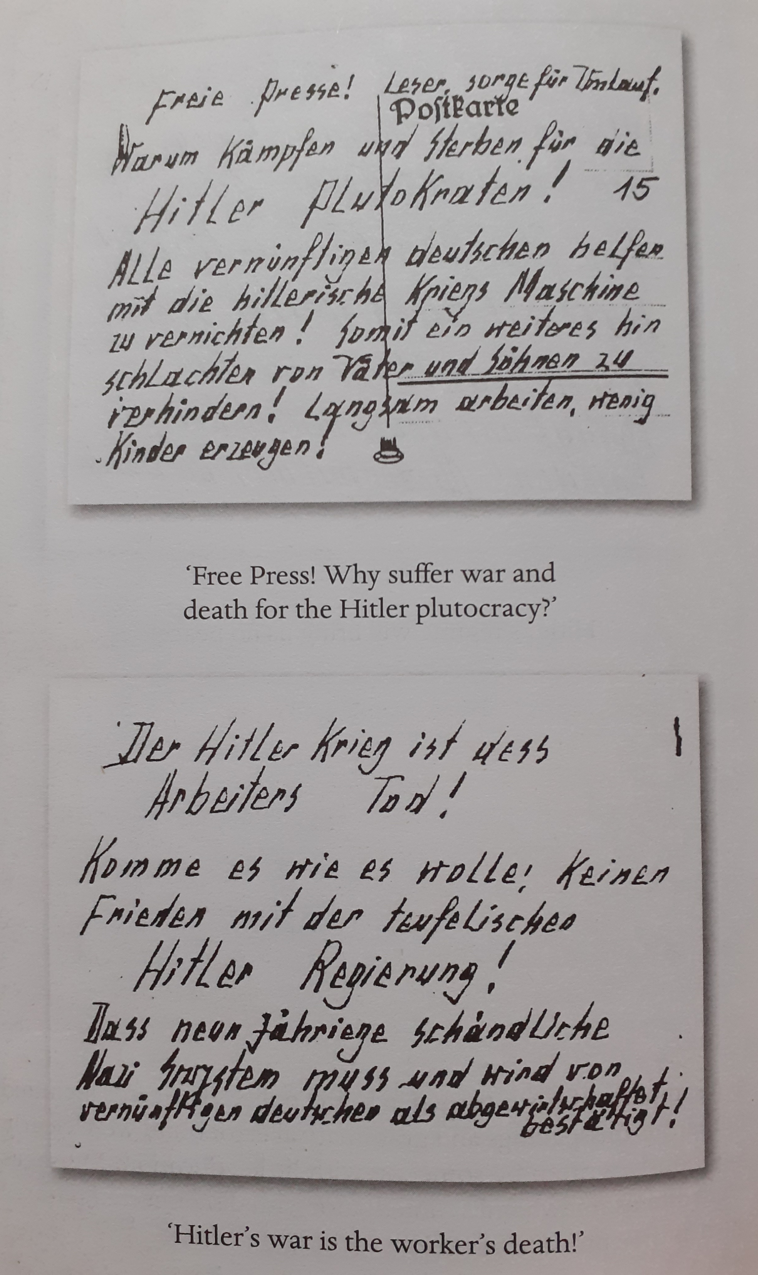 This โsurvival instinctโ is the initial position of the Quangels; Otto is an exemplary survivalist, offering no opinions and avoiding loose talk by barely uttering a word. However, with the death of their son, the desire to fight becomes stronger. The coupleโs awareness of their actionsโ severe consequences is referred to several times, yet they continue with steely, measured determination. This being said, they are careful. Otto particularly understands the need for longevity in their muted resistance; the more postcards they can write, the further their message will spread. Unfortunately, the perspective of Escherich brings a strong sense of dramatic irony; the reader knows the cards are not having the effect the couple imagine. They appear to have overestimated the general population, or perhaps underestimated the potency of fear and, though not entirely alone in their beliefs, most of the cards are immediately handed to the Gestapo. If anything, the finders are angry to be endangered by the unknown writer – โdragging strangers to the gallows!โ. One of the poignant moments of the novel is Otto discovering this. Yet, as Richard Flanagan observes: